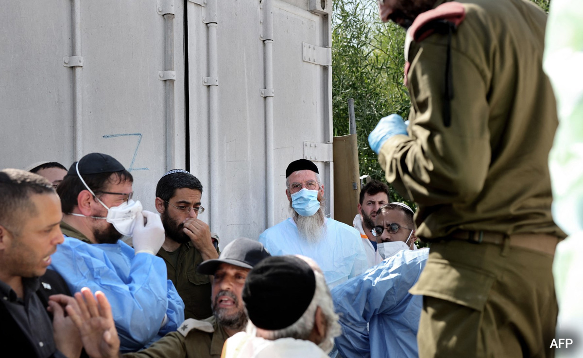 Teams of doctors, dentists, forensic experts and volunteers are working around the clock to identify bodies that were still arriving at the Shura military base, near the central town of Ramla, on Sunday, eight days after the attacks. Four other centres are carrying out similar work, officials said. Hundreds of bodies waiting to be identified or to be taken for burial are stored in containers lined up in the base next to a tent where the teams work.
