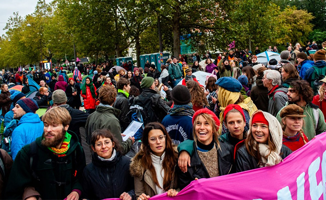 Demonstrators gathered on a main traffic artery through the city in front of the national Rijksmuseum with banners that read: "stop talking, start acting" and "tell the truth."