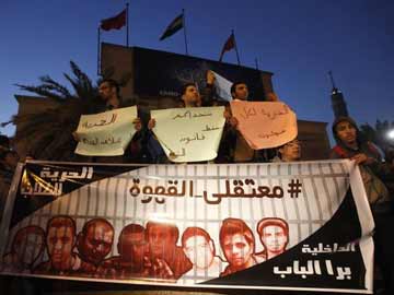 Protesters demand the release of political prisoners, outside the Cairo Opera house.