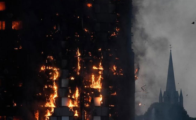 Flames and smoke billowed as firefighters dealt with fire in West London's Grenfell Tower
