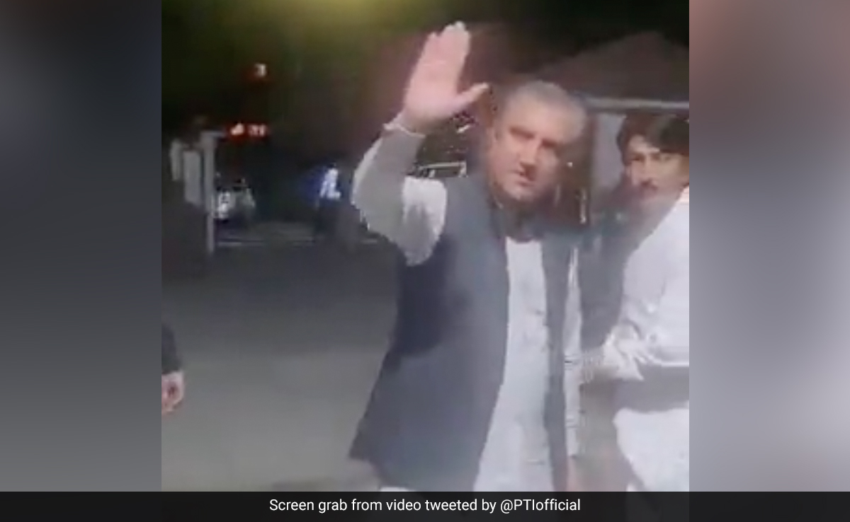A video shared by Qureshi's Pakistan Tehreek-e-Insaf party on Twitter shows plain-clothed men taking him away, with him waving at party workers before departing from the location where he was detained.