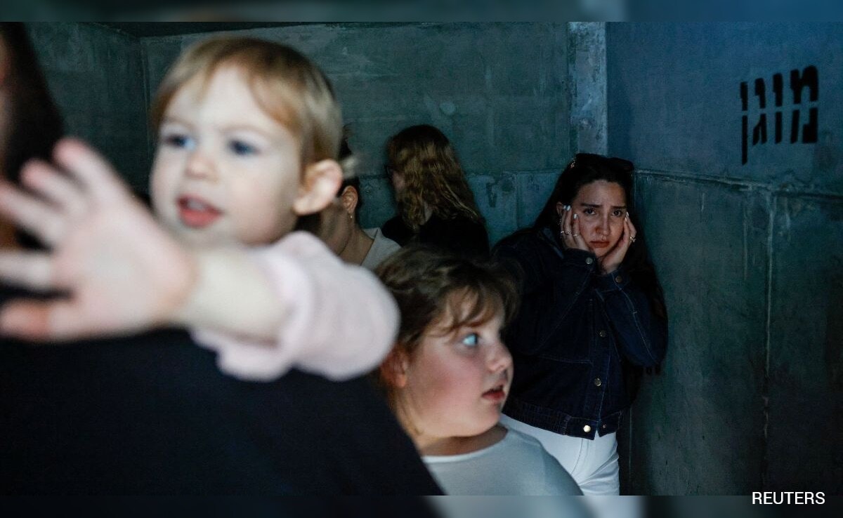 Tel Aviv residents take refuge in a bomb shelter.