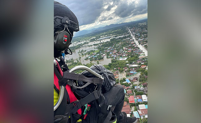 A paramotoring enthusiast in northern Thailand has taken to the skies to help deliver urgently needed supplies to people cut off by floods.