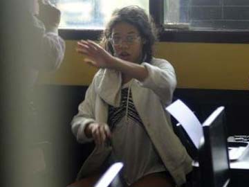 Heather Mack, the daughter of an American woman found dead inside a suitcase on the Indonesian holiday island of Bali, gestures while in custody in a police station in Denpasar August 14, 2014