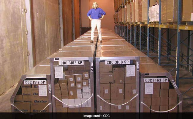 Nationwide, the repository contains enough medical countermeasures to add up to more than 133,995 pallets. Laid flat, they'd cover more than 31 football fields - or 41 acres of land. They contain enough vaccine to protect every person in America from smallpox.