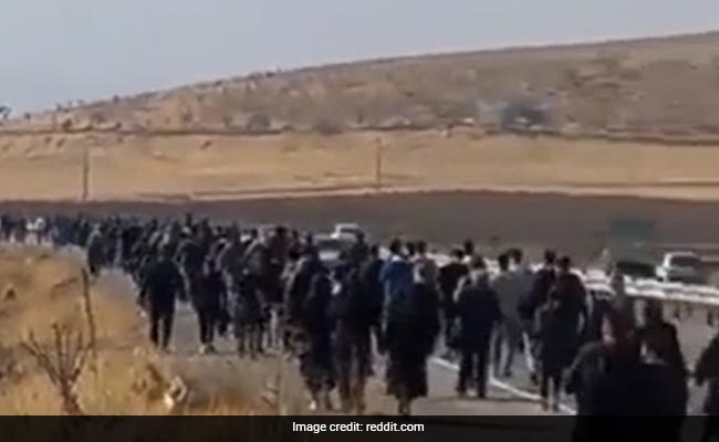 But many thousands more were seen making their way in cars, on motorbikes and on foot along a highway, through fields and even across a river, in videos widely shared online.