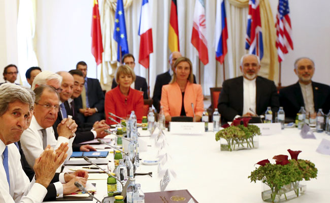 File Photo: Iranian Foreign Minister Mohammad Javad Zarif along with his counter parts at meeting at the hotel where the Iran nuclear talks are being held in Vienna, Austria on July 6, 2015. (Reuters)
