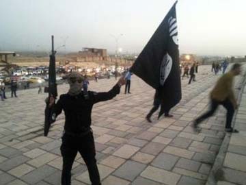 A fighter of the Islamic State of Iraq and Syria (ISIS) holds an ISIS flag and a weapon on a street in the city of Mosul, June 23, 2014.