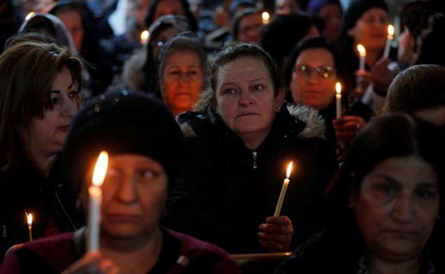Women holding candles ululated as they went into the town's Mar Shimoni church, expressing their joy at returning to the place where many of them said they had been baptised.