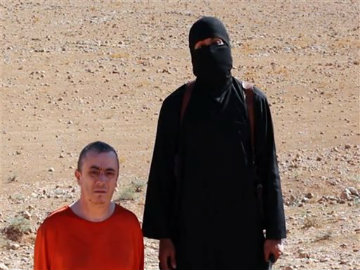 This is the fourth such video released by the Islamic State group. The full beheadings are not shown in the videos, but the British-accented, English-speaking militant holds a long knife and appears to begin cutting the three men, American reporters James Foley and Steven Sotloff and British aid worker David Haines.