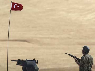 A Turkish soldier stands on a hill, facing the Islamic State (IS) fighters' new position in Syrian city of Ain al-Arab (Kobane). (Agence France-Presse)