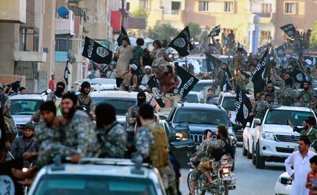 Islamic State militants take out a parade in the Syrian town of Raqqa. (Associated Press)