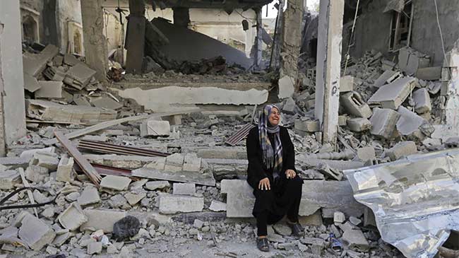 A Palestinian woman cries upon her return during a 12-hour ceasefire to what it was the family house, destroyed by Israeli strikes in Beit Hanoun, northern Gaza Strip, on July 26.