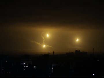 Flares light up the sky over Gaza City, Friday Aug. 1, 2014.