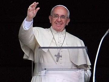 Pope Francis salutes the crowd from the window of the apostolic palace overlooking St.Peter's square during his Sunday Angelus prayer on May 18, 2014 at the Vatican.