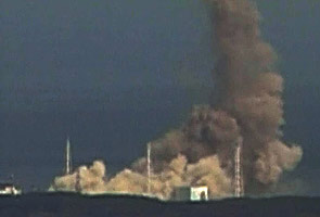 Live footage on public broadcaster NHK showed the skeletal remains of the reactor building and thick smoke rising from the building. Eleven people had been injured in the blast, one seriously, officials said.