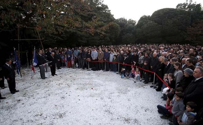 A moment of silence to pay tribute to the victims of Paris attacks with French residents in Japan and French embassy staff at Dana's official residence in Tokyo, Japan, November 15, 2015. (Reuters)