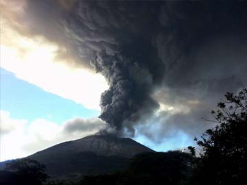 The agency's images showed a few craters on Nishinoshima spewing columns of smoke 1,500-2,000 metres (4,900-6,600 feet ) high as molten lava flowed into the sea, sending clouds of white steam into the sky.