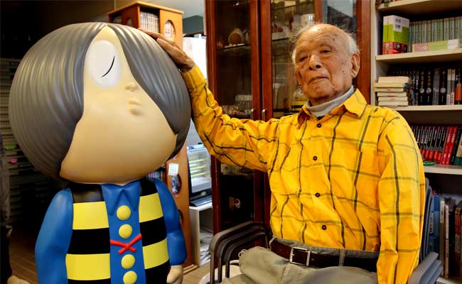 The native of Tottori prefecture in western Japan began his career as a cartoonist after surviving World War II during which the conscripted Japanese soldier lost his left arm in a US air strike.
