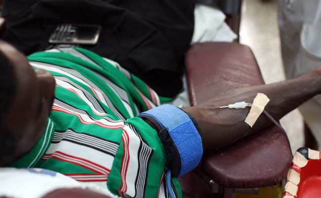 A man donates blood at Korle Bu hospital's blood centre on September 5, 2014. (Agence France-Presse)
