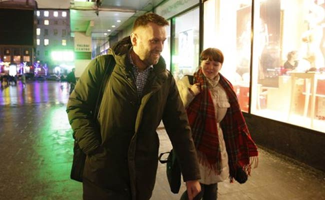 Alexei Navalny arrives at a radio station on January 14, 2015, as he defies his house arrest. (Associated Press)