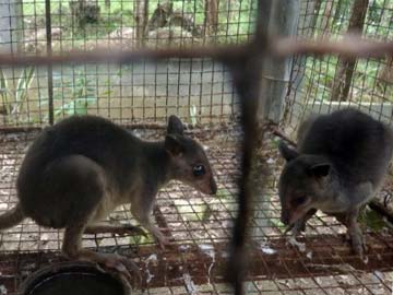 File: This undated photo shows wallabies inside a cage, one of the group of 100 exotic animals seized by wildlife officers that had been smuggled into the country