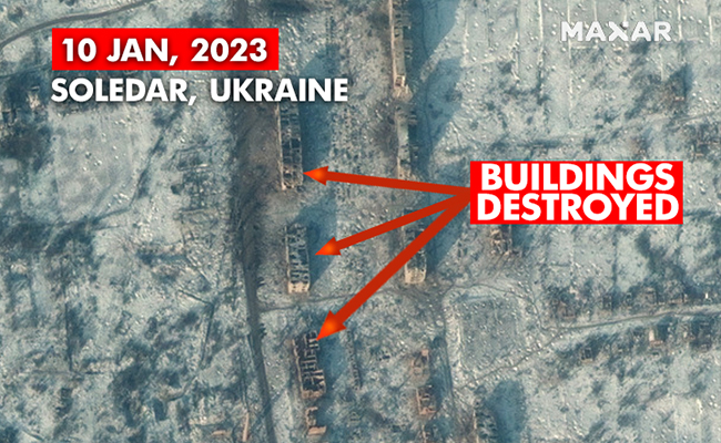 New satellite images over the last week show the scale and magnitude of the ongoing fighting between Russian and Ukrainian forces in the Eastern Ukrainian towns of Soledar and Bakhmut.
