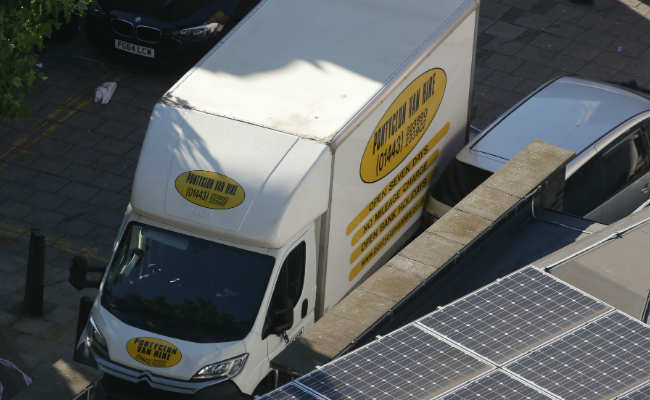 The van used in the attack on pedestrians in Finsbury Park area of north London on June 19, 2017 (AFP)