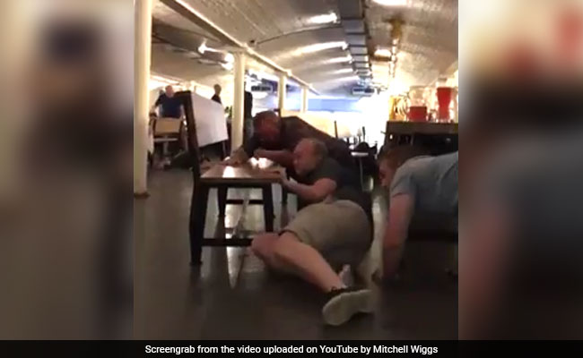 The widely-circulated video shows Saturday night revellers cowering behind tables and benches as police officials urge people to "stay down". Many people are seen lying down on the floor of the restaurant as police entered the place hurrying people to get down immediately.