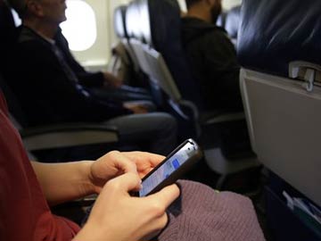 FILE photo: A passenger checks her cell phone after boarding a flight in Boston