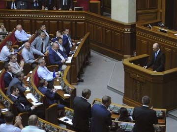 Ukrainian PM Arseniy Yatsenyuk speaks in the parliament in Kiev on July 24. (Associated Press)