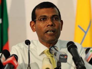 Former Maldivian president and presidential candidate Mohamed Nasheed speaks to the press in Male.