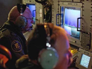 In a handout photo, crewmen on a Royal Australian Air Force AP-3C Orion aircraft search radar screens for signs of the missing Malaysian Airlines over the southern Indian Ocean on March 24, 2014.