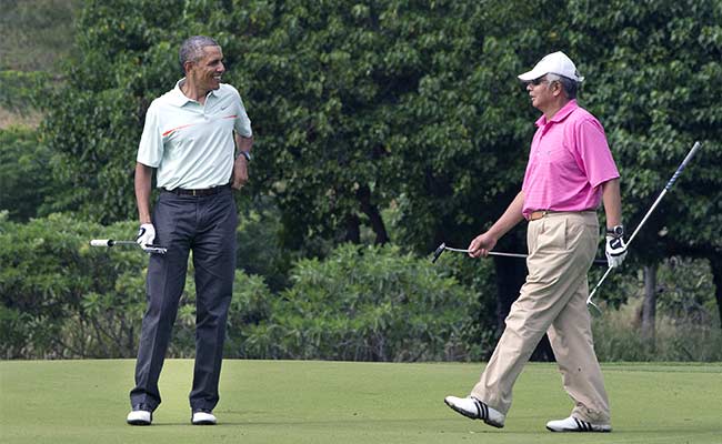 US President Barack Obama and Malaysian Prime Minister Najib Razak playing golf on December 24, 2014. (Associated Press)