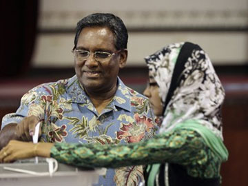 Maldives President Mohamed Waheed Hassan casts his vote in Male, Maldives, Saturday, Nov. 9, 2013. (AP Photo)