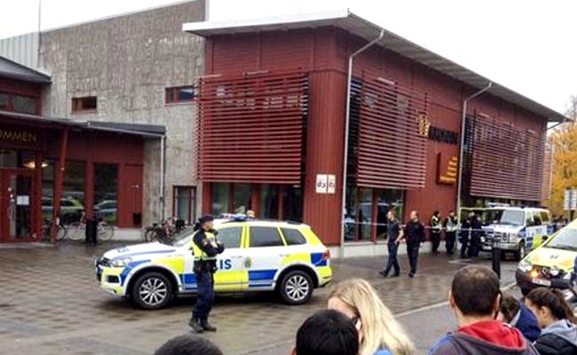 Police cordon off an area after a masked man attacked people with a sword at a school in Trollhattan, western Sweden on October 22, 2015. (Reuters)