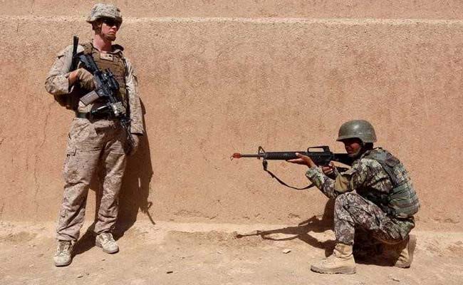 A US Marine stands next to an Afghan National Army soldier during a training in Afghanistan (Reuters)