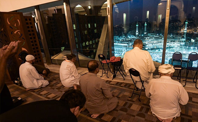 At another similarly prestigious hotel, guests are offered a "pilgrimage area" complete with a view "of Islam's holiest site... allowing (them) to lift their spirits".