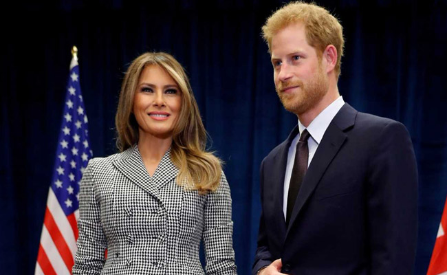 Prince Harry and Melania Trump -- dressed in a houndstooth suit -- spoke for a few minutes in the afternoon, posing for photographs before the prince headed to give out the first medals of the Games at the driving challenge competition.