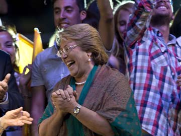 Chilean president-elect, Michelle Bachelet, celebrates after getting the results of the run-off presidential election in Santiago on December 15, 2013.