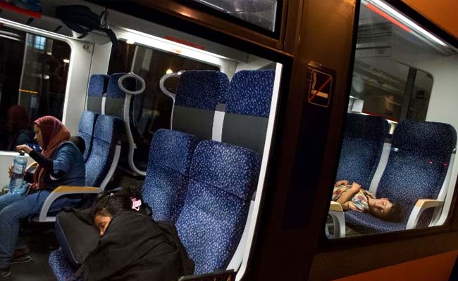 Migrant children sleep on the train from Budapest to Vienna at the Austrian - Hungarian border in Hegyeshalom on August 31, 2015. (Agence France-Presse)