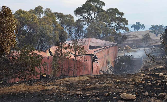 A general view shows a shed destroyed during bushfires in Upper Hermitage in the Adelaide Hills on January 3, 2015. (AFP)