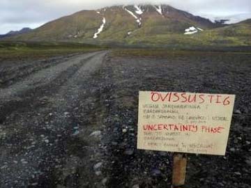 A warning sign on the road to Bardarbunga volcano, in Vatnajokull glacier, August 19, 2014. (Reuters)