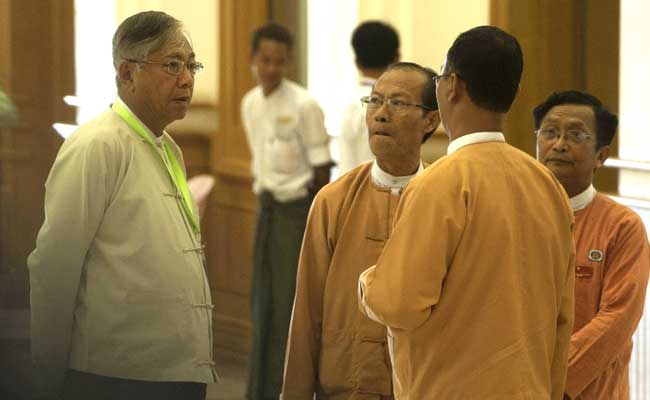 The candidate with the most votes becomes president and the other two become vice presidents. The other nominees are NLD lawmaker Henry Van Tio and the military's candidate, Myint Swe, a hard-line retired lieutenant general whose nomination raised concerns about the future of a power-sharing relationship with the NLD.