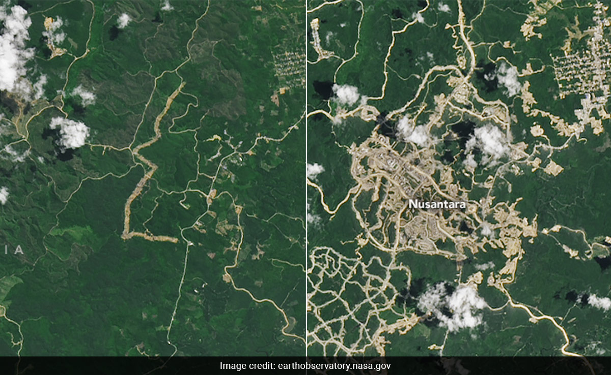 American space agency NASA has shared satellite photos of a city emerging in a jungle. The jungle is situated in Borneo and the city being developed is Indonesia's new capital, Nusantra. The satellite photos show how the forest area has changed since 2022 with progress in the development of city. NASA said the forest area has undergone rapid change in nearly two years, adding that roads have been carved into the landscape and buildings erected near Balikpapan Bay in Eastern Kalimantan for the new capital city.