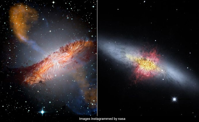 In the post, the US space agency explained that the first image is of Centaurus A - a galaxy with orange and dark red dust lanes comprising a centre column and a faint shell of blue along its outskirts. The second post shows a 3D view of the Orion Nebula, which reveals the detailed structure of the nebula, including a "bubble" that has been blown clear of gas and dust by a powerful stellar wind.