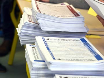 Voting lists are displayed at one of polling station in Sarajevo center on October 12, 2014. (Agence France-Presse)