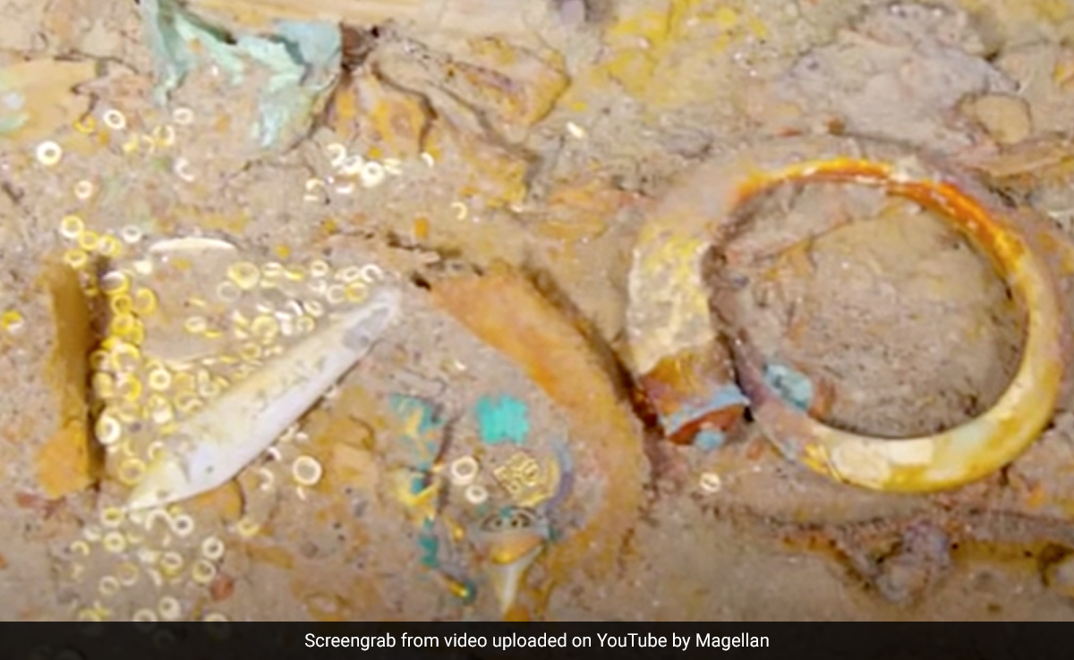 In one of the images, a turquoise and gold necklace was spotted which featured the tooth of a Megalodon, an extinct shark species, and the largest shark to have ever lived. However, due to a pre-existing agreement, artifacts are not allowed to be removed from the wreckage.