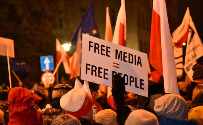 Opposition anger boiled over on Friday with dozens of Polish MPs seizing parliament's main chamber over the plans to restrict journalists, as thousands of demonstrators marched outside in support for their stance.
