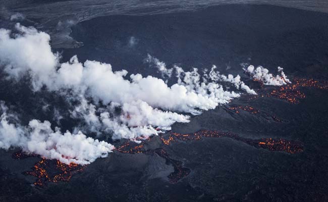 Picture shows magma along a 1-km-long fissure in a lava field north of the Vatnajokull glacier. (Reuters)